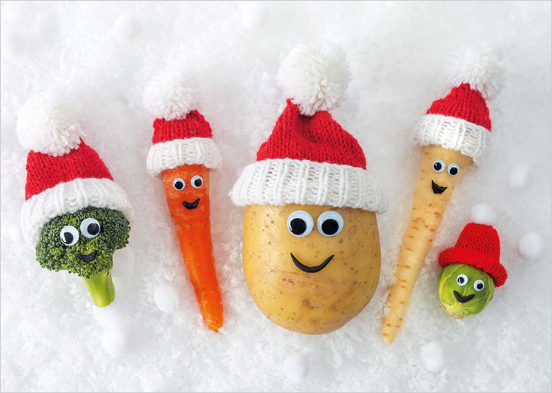 Winter Vegetables are Gloss finished and suitable for corporate, business, company or personal use. 025-048 is a perfect choice for small to large companies. Our Winter Vegetables Christmas cards are printed onto a premium thickness board, acquired only from sustainable sources and produced in the UK. Your inside personalisation is peronalised directly onto the card. Winter Vegetables are sized at 210x148mm.